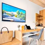 An extra charge applies to a tennis court and a swimming pool. The family hotel offers access to a famous beach with sun loungers, parasols, and water sports facilities. Car hire are available at this accommodation and the area is popular for snorkelling, diving, and hiking. The Chrousso Village Paliouri also features a work desk and a xerox for those arriving on business.